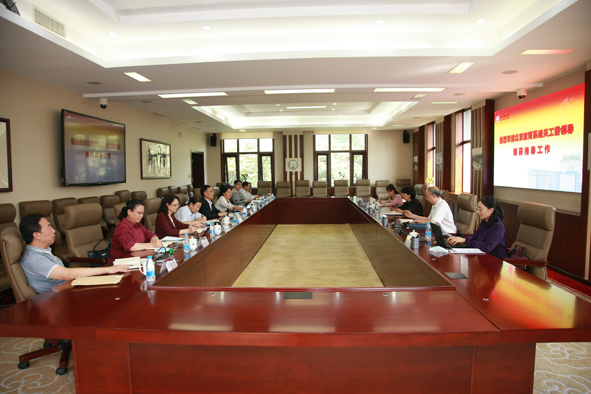 9月25日下午,北京市关工委副主任、北京教育系统关工委主任张雪,北京教育系统关工委副主任卢思锋、秘书处干部乔永,北京教科院高教所组织力建设调研组韩亚菲一行4人,来学校调研思政课教学督导员队伍建设和关工委组织力建设情况。学校党委书记郑文堂,党委副书记、关工委主任田红芳出席调研会。