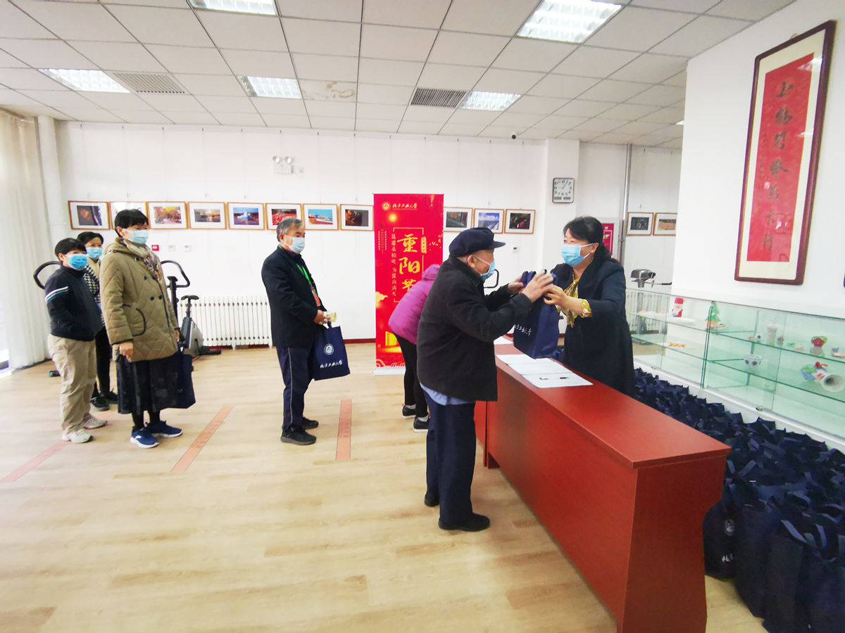 因疫情防控常态化的实际,无法组织大规模聚集性团拜会,今年学校重阳节团拜改变形式,给每名老师写了一封节日慰问信,制作了新版的“温馨服务手册”,发放了垃圾分类宣传页,准备了消毒棉片、口罩等防疫物品。居住校内的老同志,慰问品在文化活动中心统一发放,部分居住校内行动不便的高龄老同志,工作人员将慰问品送上门,居住校外的人员,采取快递的方式配送到老同志家中,表达特殊时期学校对老同志最诚挚的问候和祝福。