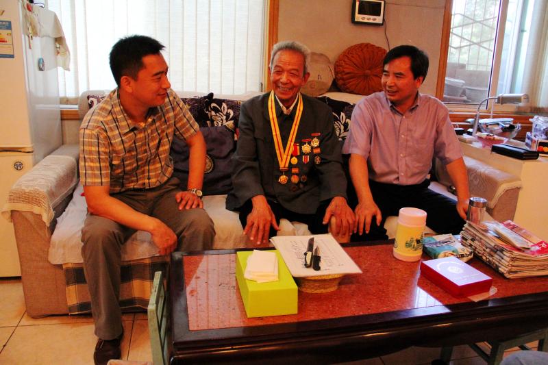 近日,我校党委书记谢辉和纪委书记王建稳分别到北京市第一福利院和家中走访慰问了我校参加过抗日战争的老战士景福元和王克,谢辉书记亲自为两位老战士佩戴了由中共中央、国务院和中央军委颁发的纪念抗日战争胜利70周年的勋章,并为老干部送上了由国家和北京市政府下发的慰问金,谢辉书记还向老干部通报了学校全年发展的基本情况,并代表学校党委和行政祝愿两位老干部身体健康,阖家幸福!