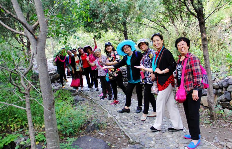 在金秋季节,老同志们漫步在十八潭的曲折山路上,看到脚下形状各异的栈道,两侧雄伟挺拔的山峰,山下蜿蜒曲折的永定河水缓缓流过,他们感到这里空气清新,植被茂盛,是个休闲的好去处。旅游的第一天还赶上刚下过一场秋雨,所有的花草和树木都显得郁郁葱葱,清新怡人,别有一番情趣!通过秋游,老同志们亲身感受到门头沟区在市政绿化和环境保护等建设中发生的巨大变化,开阔了眼界,老同志认为,离退休工作处每年为老同志组织秋游活动非常有意义。
