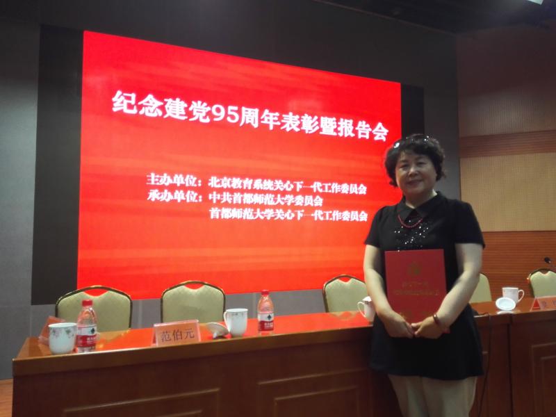 6月15日上午,北京市教育系统关心下一代工作委员会在首都师范大学召开“庆祝建党95周年表彰暨报告会”,对92位“关心下一代优秀特邀党建组织员”进行表彰,我校经济管理学院党委组织员安桂平同志受到表彰。