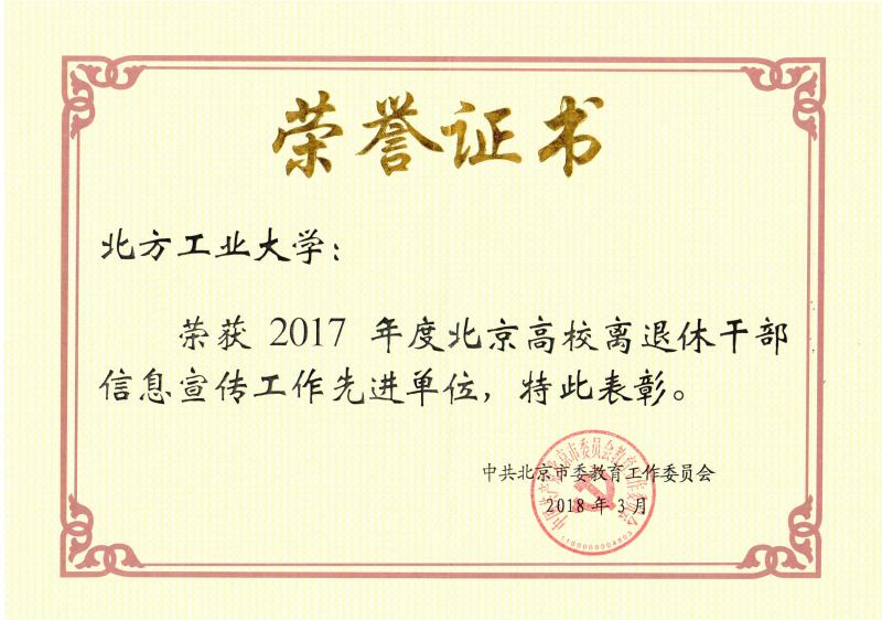 日前,在2018年北京高校离退休工作部门负责人会议上,我校被评为“2017年度北京高校离退休干部信息宣传工作先进单位”。