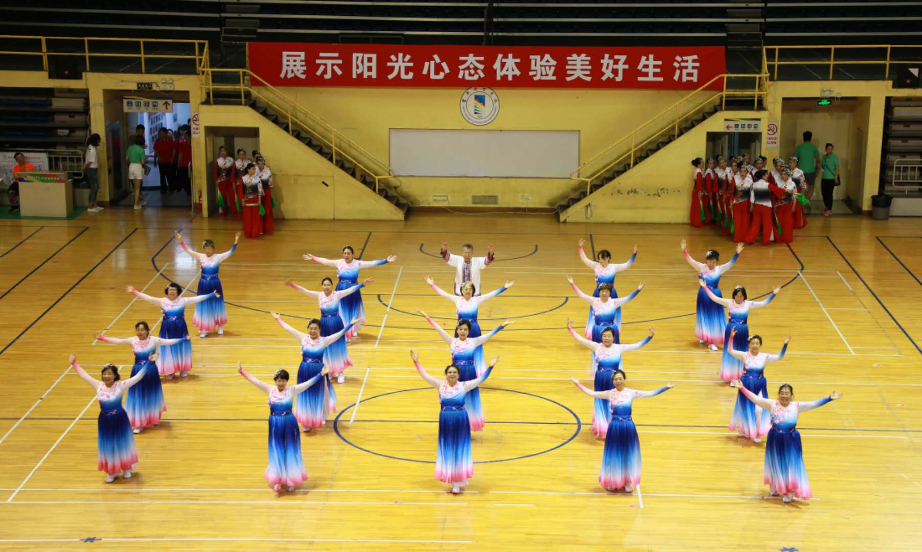 一年一度的高校老同志健身项目展示活动是北京市教育系统的传统项目和品牌项目。今年恰逢中华人民共和国成立70周年,展示活动的主题为“喜迎祖国70华诞,舞动健身乐晚年”,共有32所高校近千名老同志参加。各高校离退休工作部门对此项活动非常重视,都对参演节目进行了精心安排和细致准备。