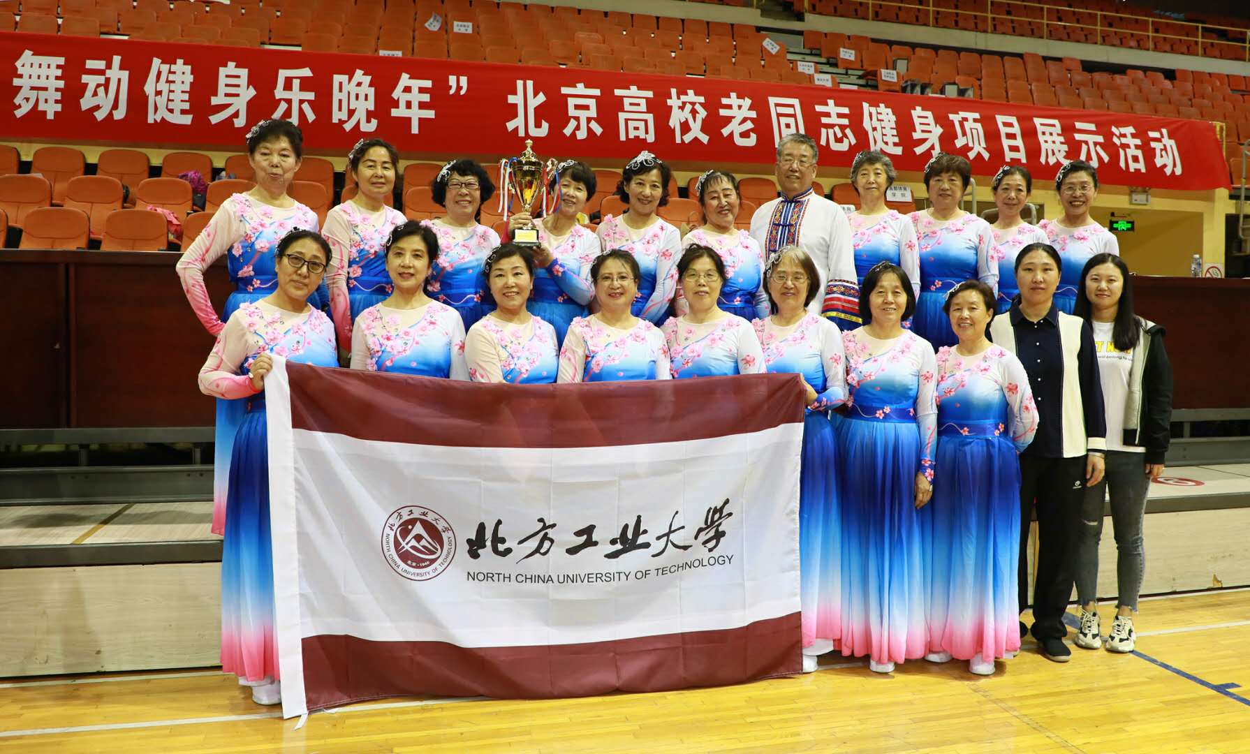 5月29日,在北京市委教育工委、北京市教委主办的北京高校老同志健身项目展示活动中,我校退休老教师表演队获得“阳光风采奖”。