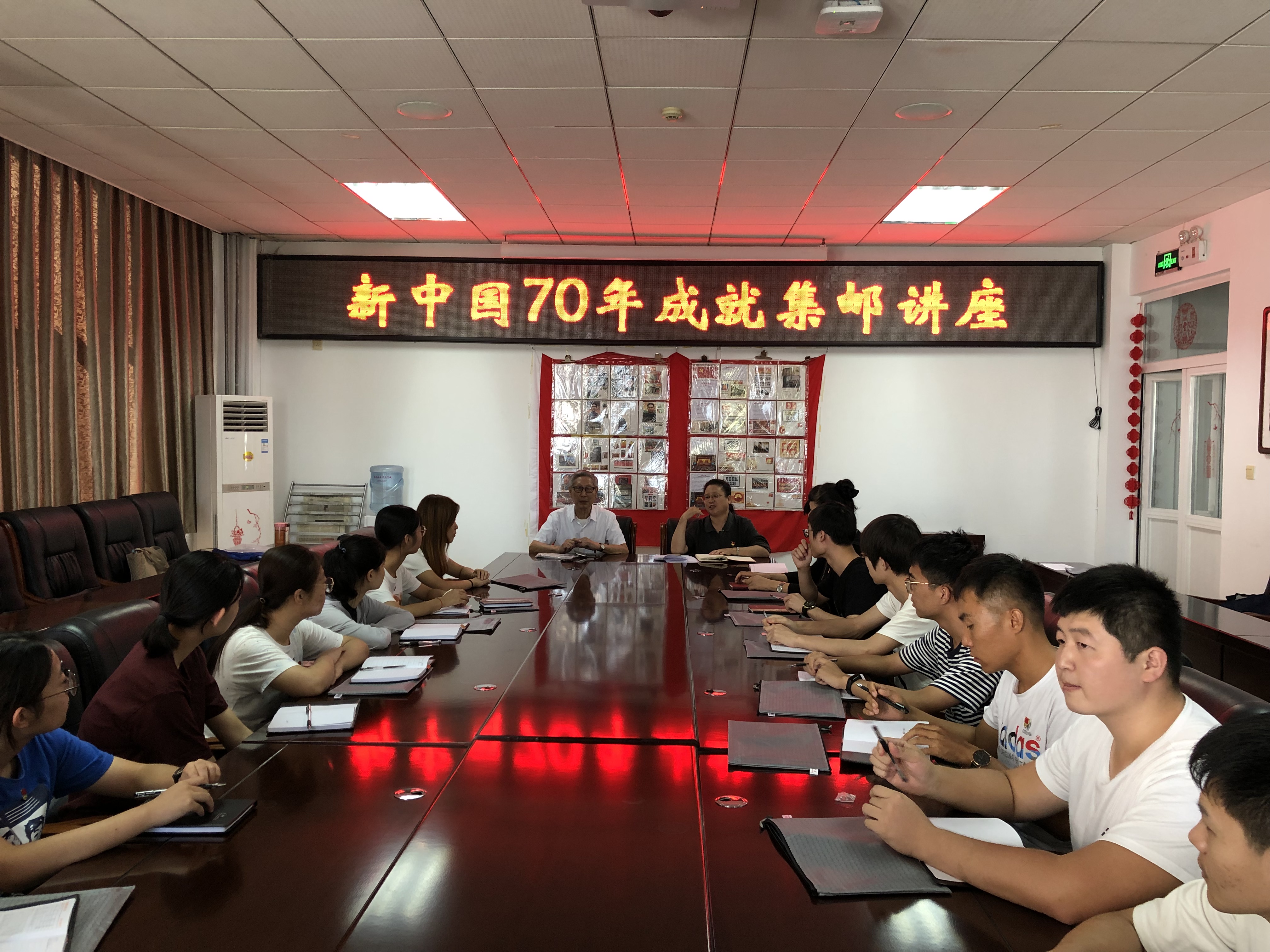 伟大的中华人民共和国成立七十周年前夕,9月25日下午,学校关心下一代工作委员会邀请退休教师穆祥纲同志为信息学院通信本科学生第二党支部党员进行了“新中国70年成就”集邮讲座。学校关工委秘书长曹淑琴同志主持活动。