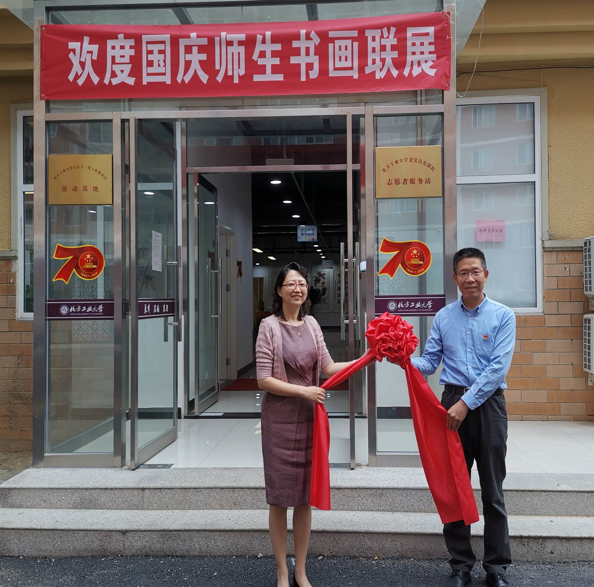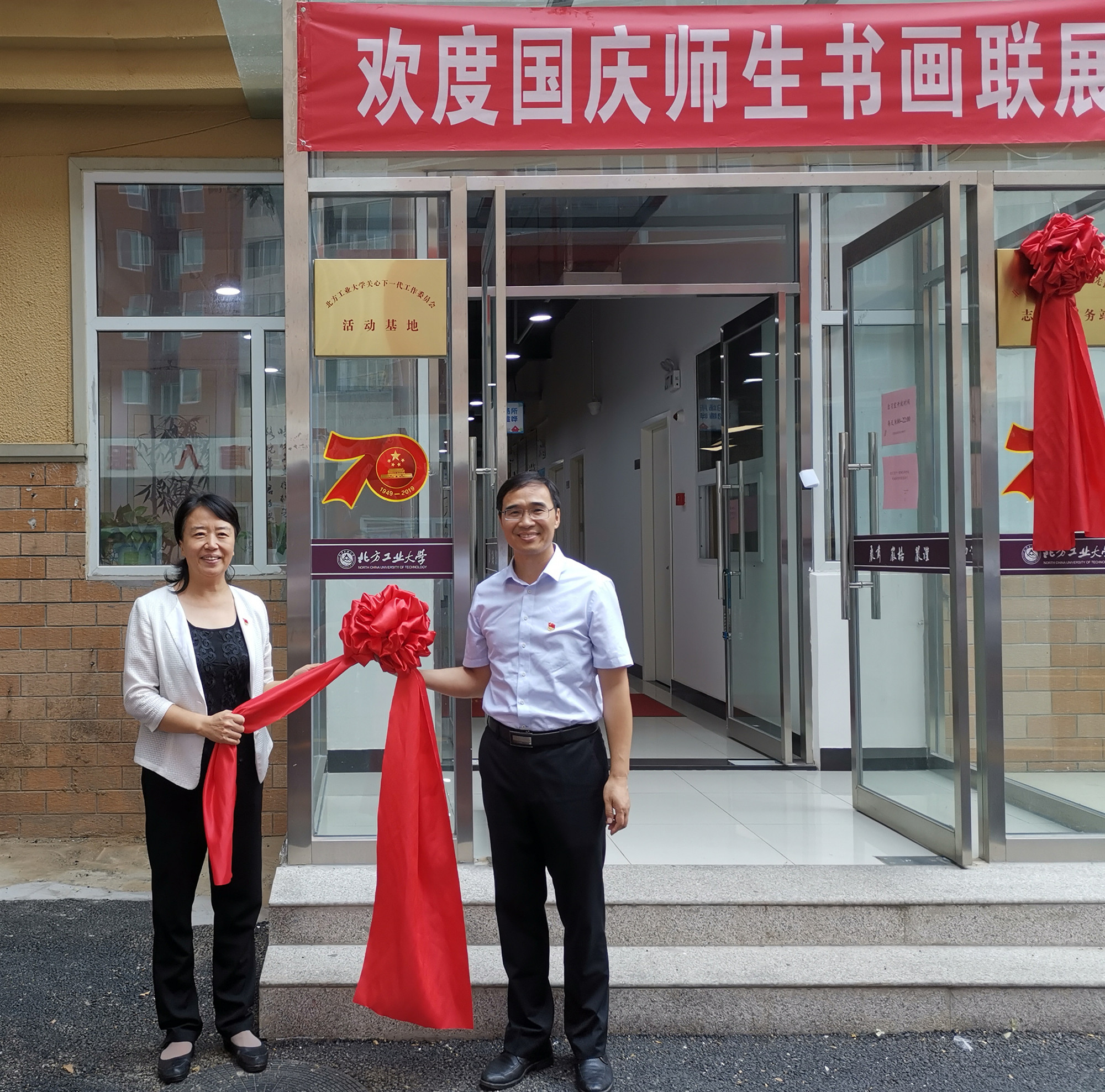 9月29日,在举国上下喜迎新中国成立70周年之际,学校关心下一代工作委员会和老党员先锋队在金鼎园学生公寓举办了“欢度国庆师生书画联展暨揭牌仪式”,学校党委副书记田红芳出席并讲话。学工部部长高国伟,离退休工作处处长黄睿、副处长曹淑琴,以及关工委、老党员先锋队和学生代表等近百人出席活动。活动由学校关心下一代工作委员会副秘书长、老党员先锋队队长陈太栋主持仪式。