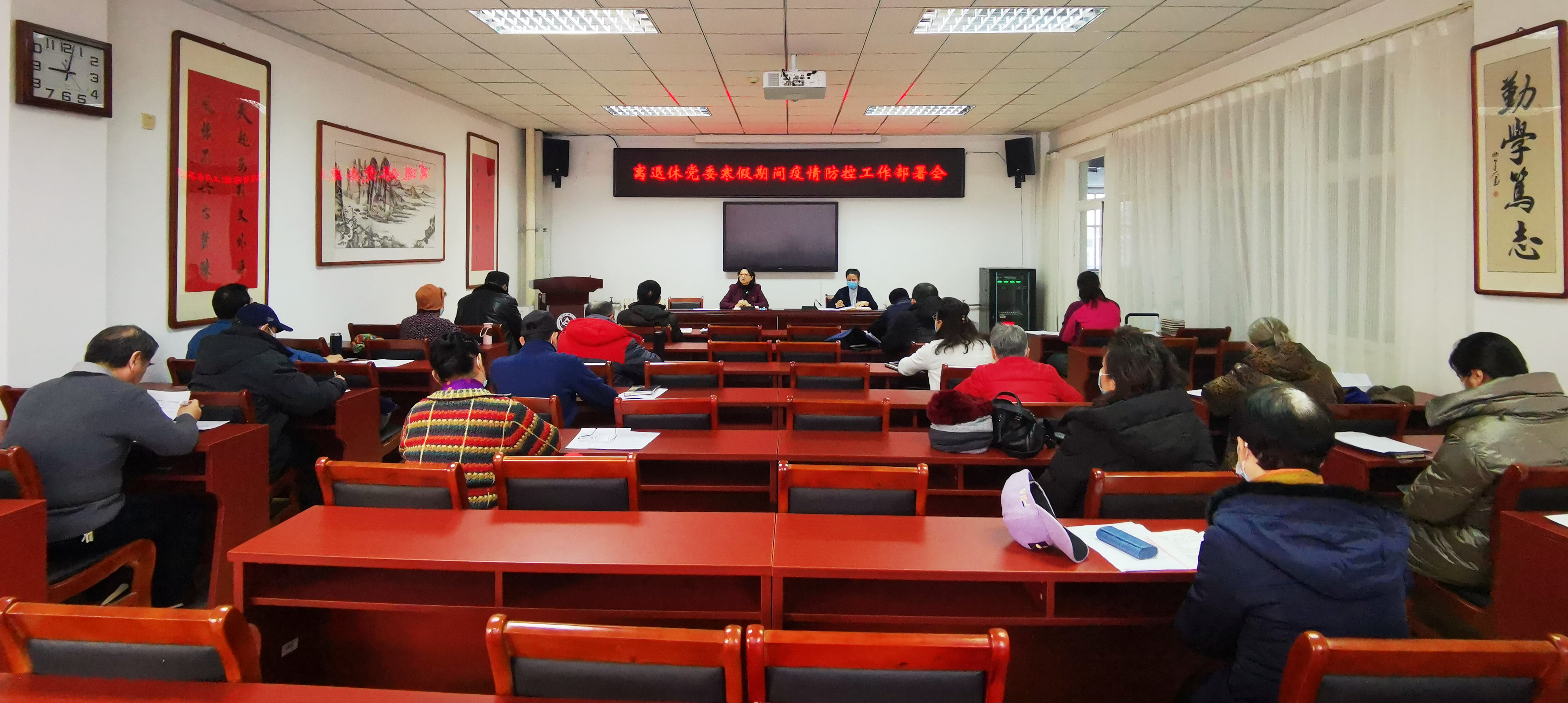 会议召开前一天,学校党委副书记田红芳对寒假期间离退休疫情防控提出三条要求:一是要把离退休人员的信息摸排准,做到人员底数清、动向清、状况清;二是引导老同志科学佩戴口罩,做好个人防护;三是通过公众号、微信群等多种途径在老同志中加强疫情防控宣传。