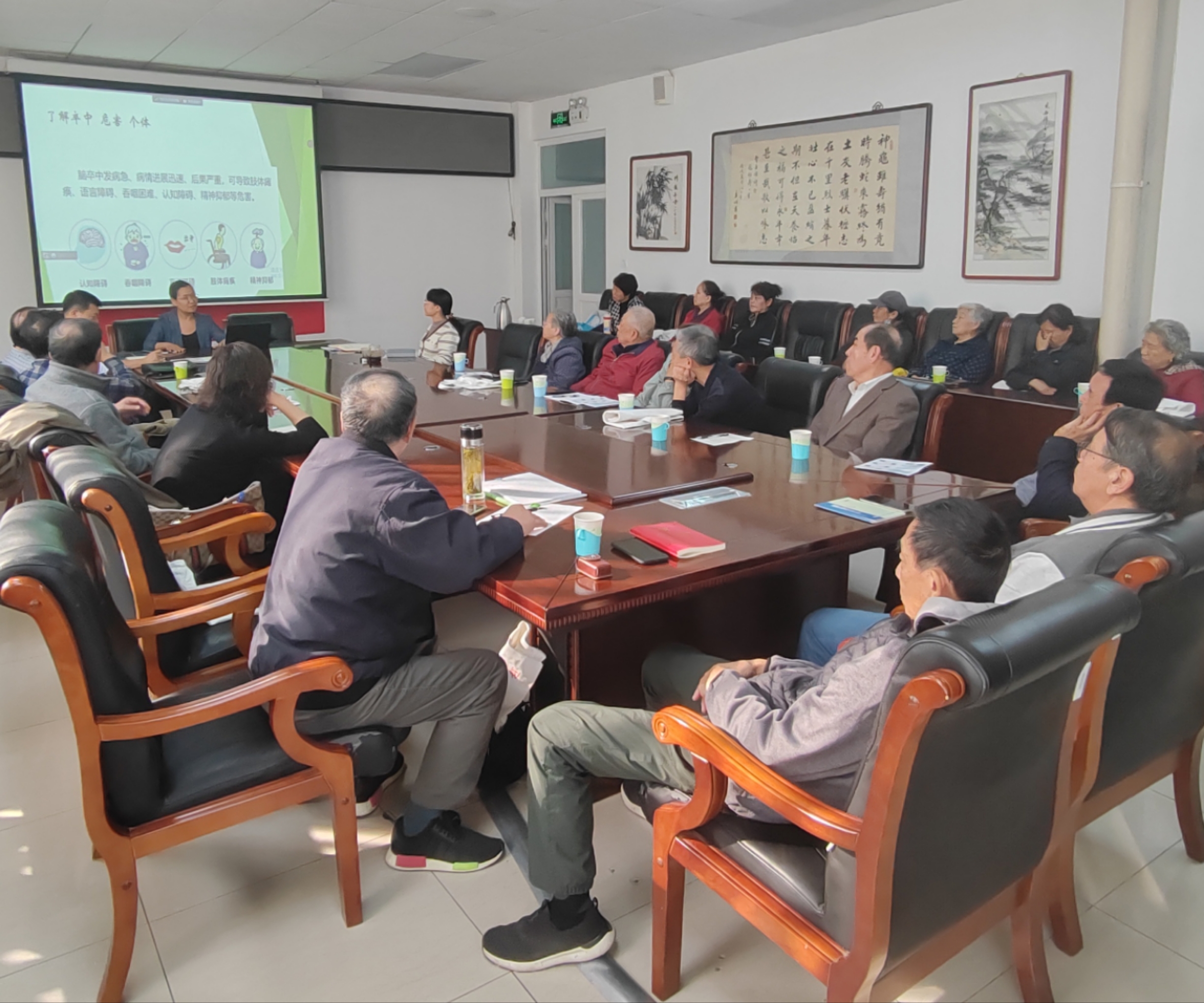 范主任围绕卒中防治开展科普讲座,结合自身多年的工作经验,用生动形象的语言和鲜活的事例介绍了卒中的概念、特点与危害,如何及时识别治疗卒中,以及从危险因素入手预防卒中,她倡导离退休老同志相信科学、相信医生,培养健康的生活方式,做好自身的健康防护。互动交流时,范主任充分调动现场老同志的积极性,耐心解答问题,讲座后还与个别老同志就有关情况做了进一步沟通。