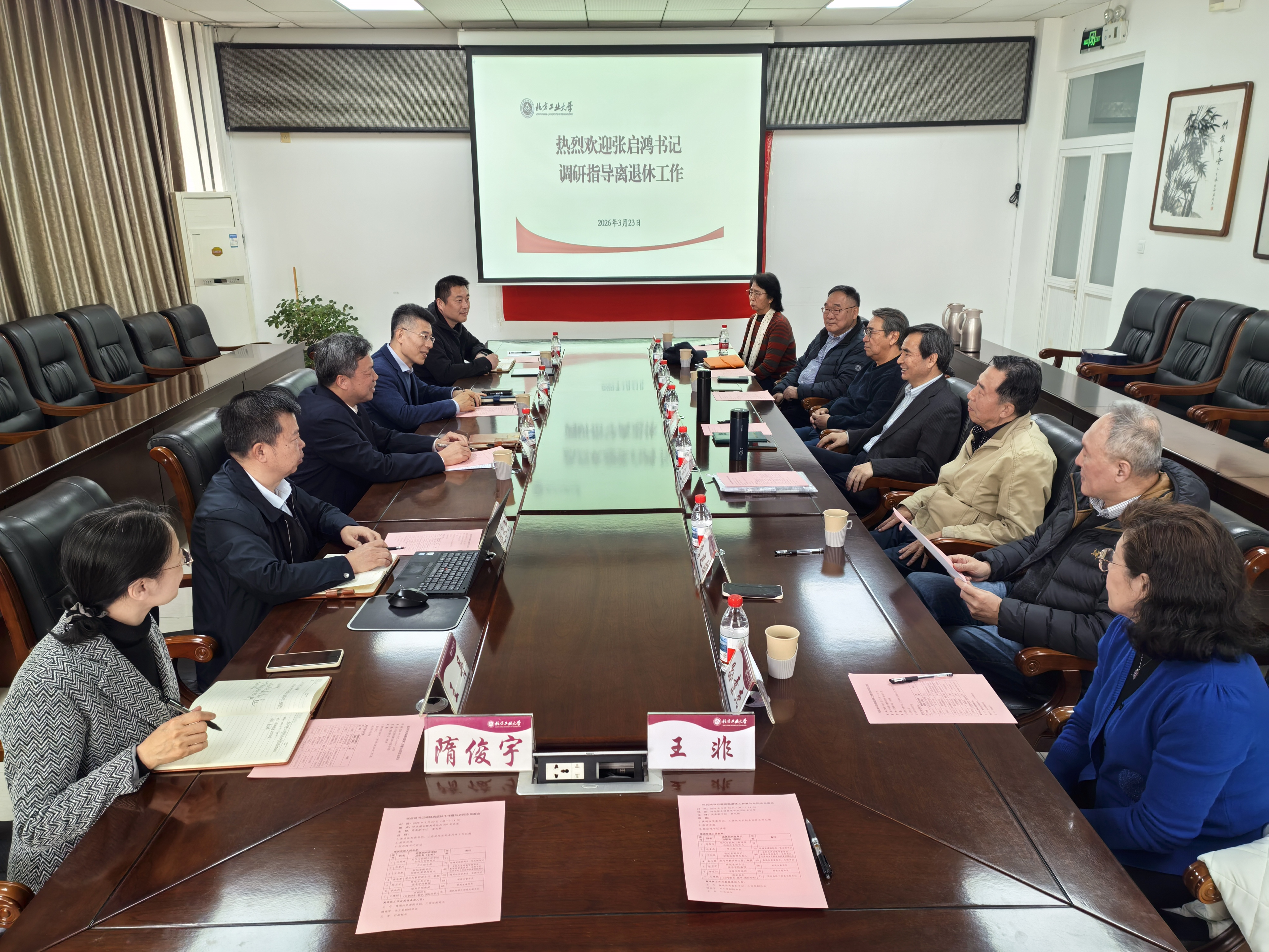 3月23日下午,党委书记张启鸿到离退休工作处调研,听取离退休工作情况汇报,并与离退休老同志代表进行座谈交流。党委副书记姜孔桥主持座谈。