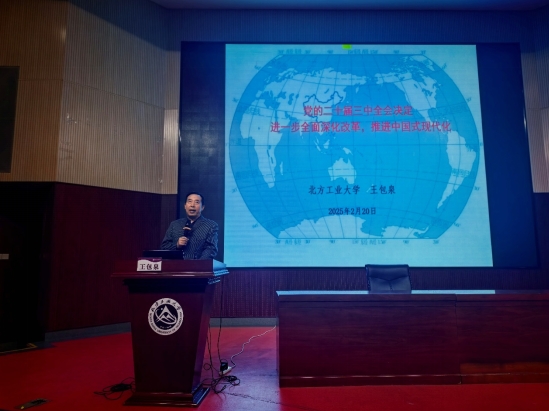 2月20日,北方工业大学机械与材料工程学院关工委邀请“五老”王包泉在文化会堂举办专题报告会,为学院教职工解读党的二十届三中全会精神。