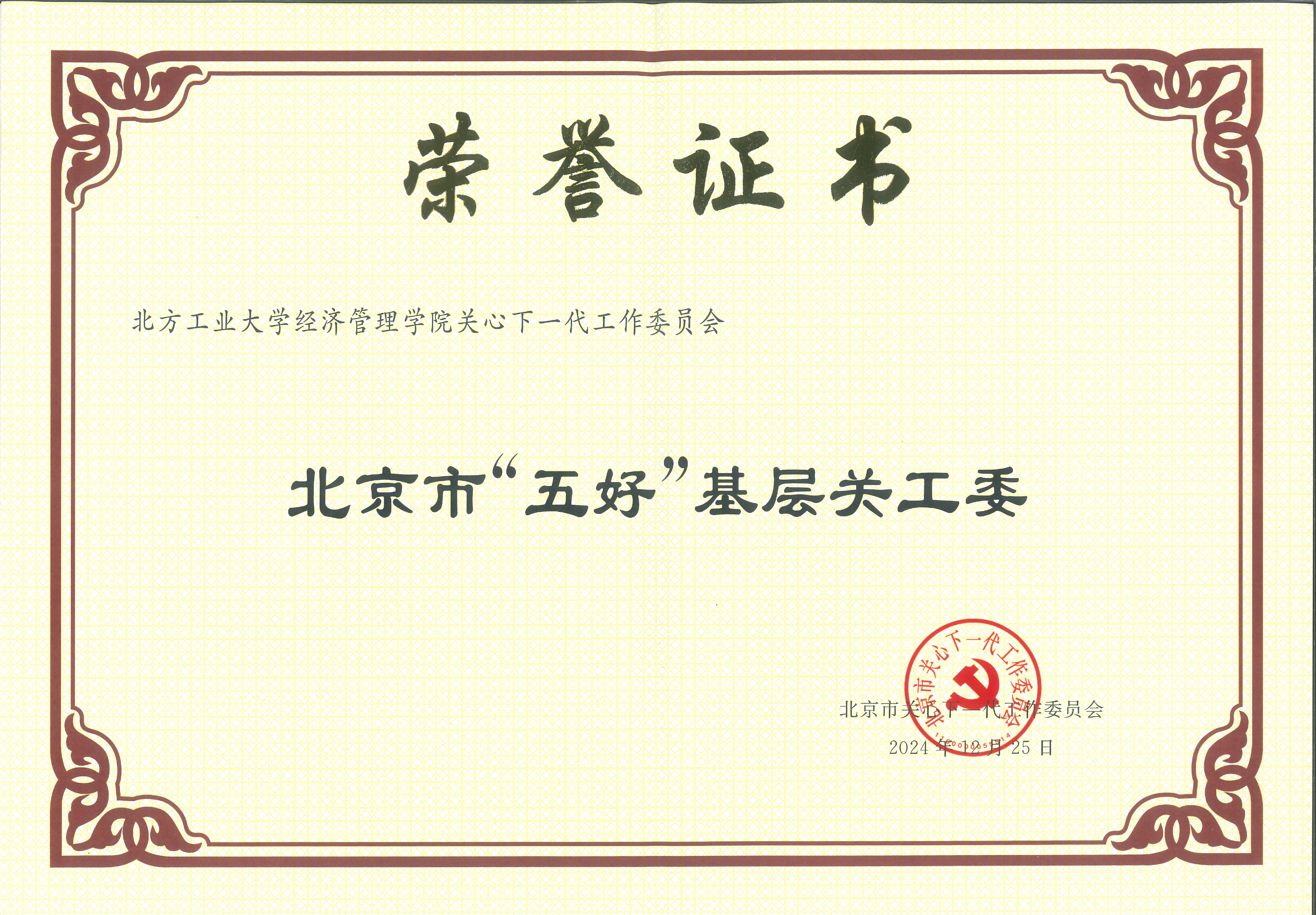 近日,北京教育系统关工委2025年度工作会在北京会议中心召开。会议全面总结了2024 年工作,明确部署了 2025 年任务,并公布了2024年“读懂中国”活动评审结果、2024年信息宣传工作先进单位和个人、2024年军训服装捐赠工作先进单位。我校荣获3项集体表彰,1项个人表彰,2项优秀作品表彰。会议还为北京市关工委认定的“五好”基层关工委发放证书,我校经济管理学院关工委被认定为北京市“五好”基层关工委。