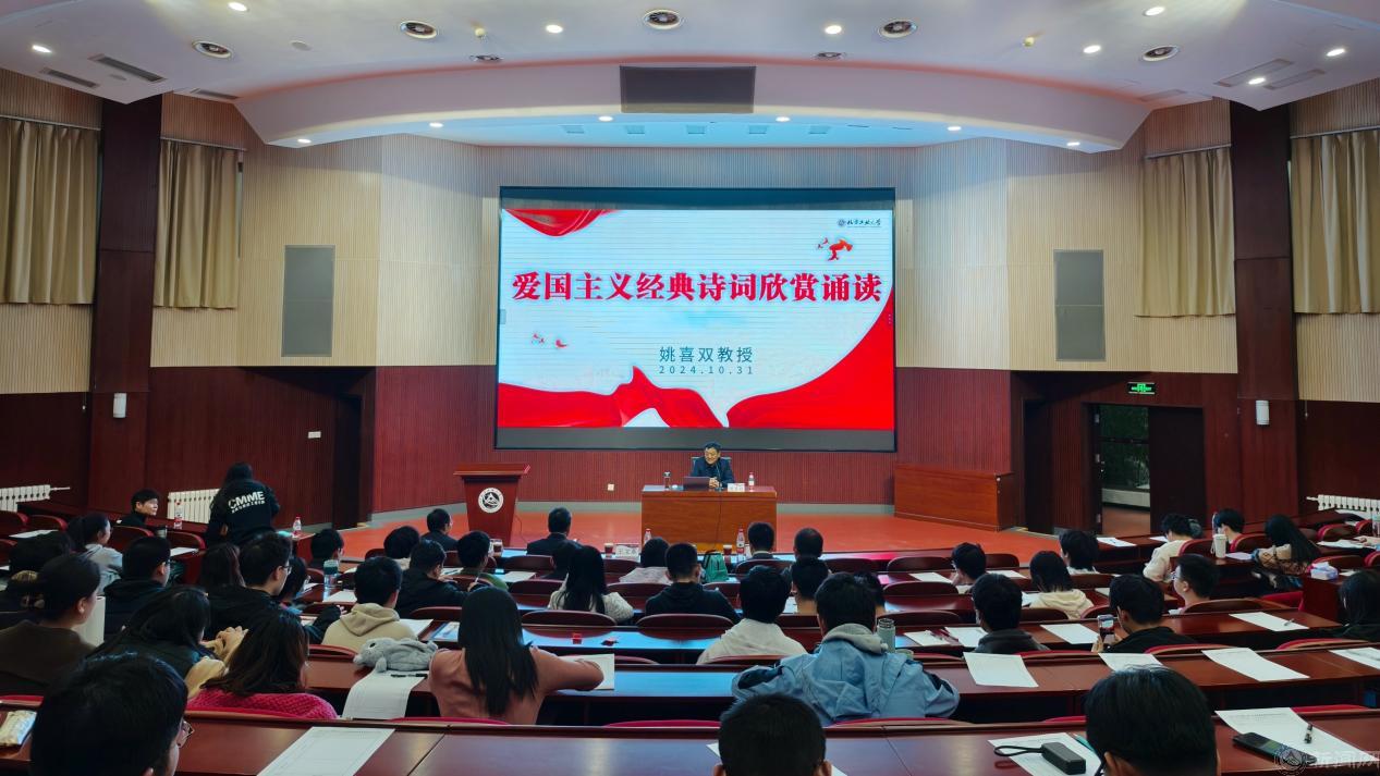 10月31日下午,我校关工委主办、机械与材料工程学院关工委承办的“爱国主义经典诗词欣赏诵读”主题报告在文化会堂圆满举办。本次报告特邀教育部关工委常务副主任、中国传媒大学博士生导师、中国语文现代化学会会长姚喜双教授主讲。学校关工委秘书长、二级学院关工委主任、有关工作人员以及机械与材料工程学院200余名师生参加了本次报告会。